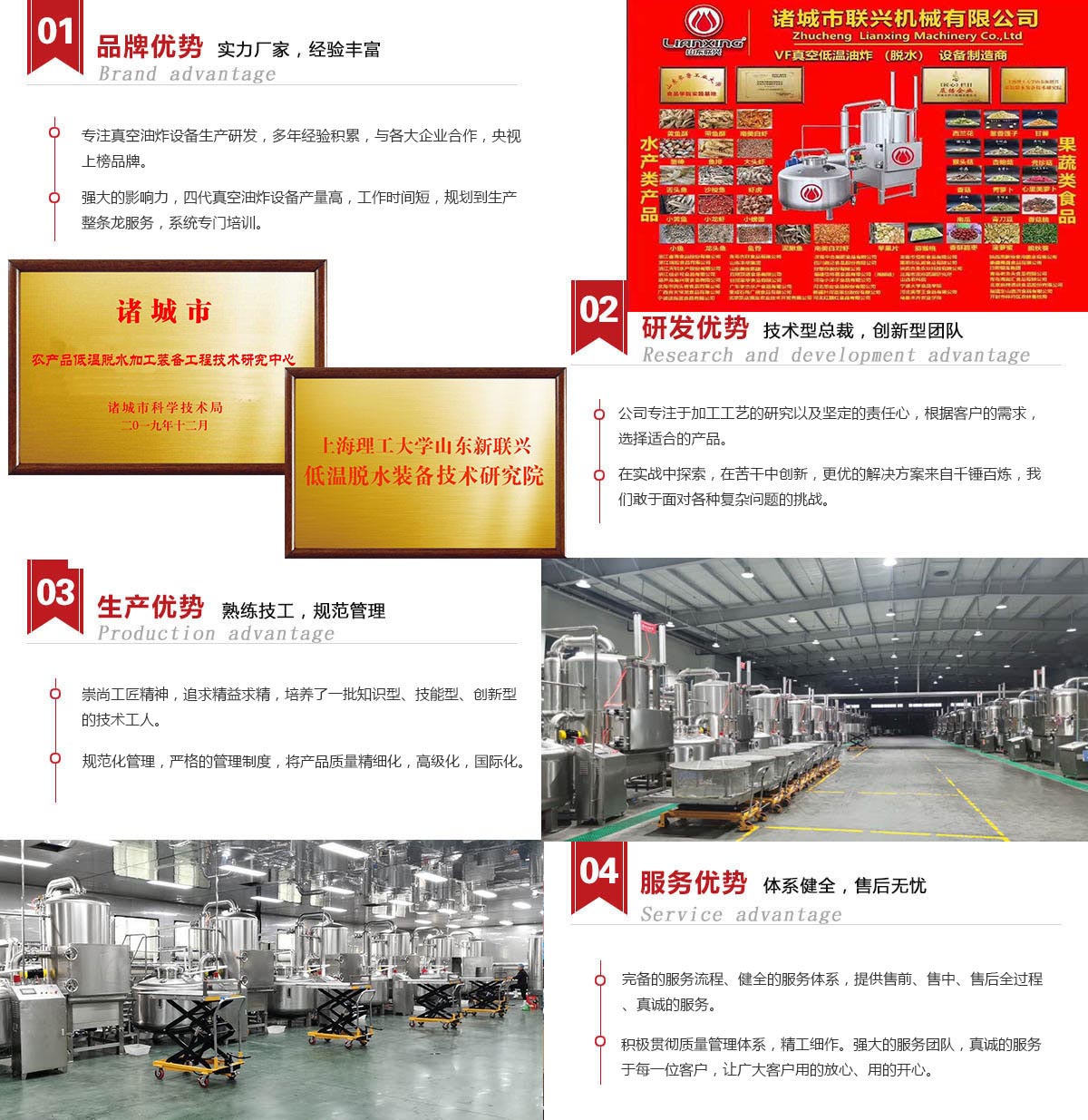 我公司與山東齊魯工業大學食品工程學院合作,共同研發食品機械,主要生產真空油炸機(VF低溫脫水)、果蔬脆片加工設備、酥魚酥蝦加工設備、清洗殺青線、風干冷卻線等。